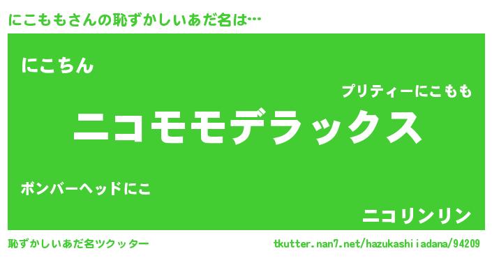 | ヒーロー風カッコイイあだ名 | 『仮面ニコダー』『超時空戦士ニコモモ』 |