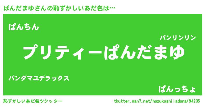 | ヘコむあだ名 | 『ぱんにー』『ぱんだまゆ(震え声)』 |