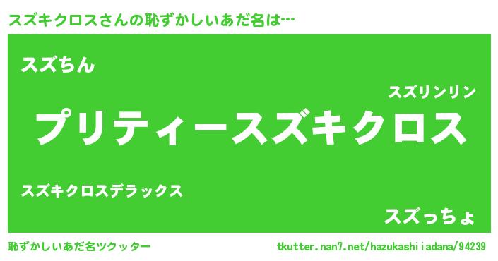 | 男性向けラノベタイトル風あだ名 | 『スズキクロスの憂鬱』 |