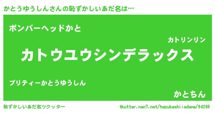 | ヘコむあだ名 | 『かとうゆうしん(笑)』『かとを』 |