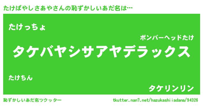 | 意味不明あだ名 | 『自称たけばやしさあや』 |