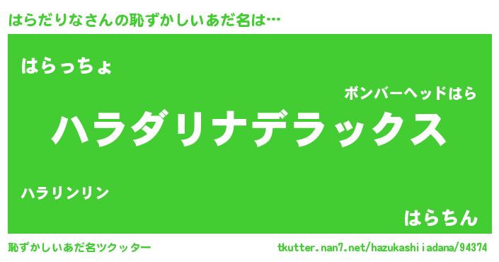| 女子向けラノベタイトル風あだ名 | 『はらだりななんてお断りですっ。』 |