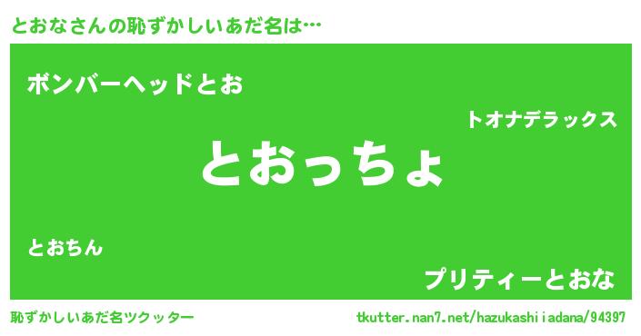 | ポケモン風あだ名 | 『トオナダネ』『トーオイ』 |