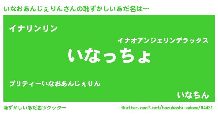 | 欧米人風あだ名 | 『いなおあんじぇりんクリステル』 |