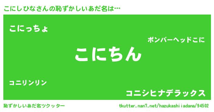 | 伝説のあだ名 | 『古より伝わる暗殺者こにしひな』 |