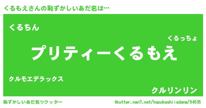 | ヘコむあだ名 | 『くるにー』『くるもえ(爆)』 |