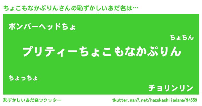 | 意味不明あだ名 | 『住所不定無職ちょこもなかぷりん(1歳)』 |