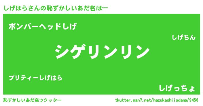 | 男性向けラノベタイトル風あだ名 | 『しげはらの嫁は女の子じゃないと思った?』 |