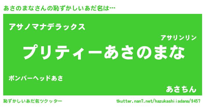 | ヒーロー風カッコイイあだ名 | 『スーパーアサノマナ』『ネオアサノマナ』 |