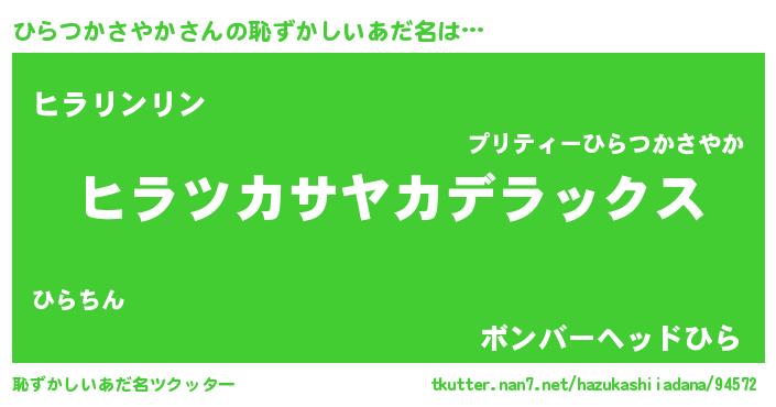 | 男性向けラノベタイトル風あだ名 | 『Re:ひらつかさやかから始める異世界生活』 |