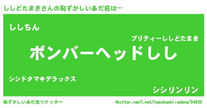 | ヘコむあだ名 | 『ししどたまき(苦笑)』『ししお』 |