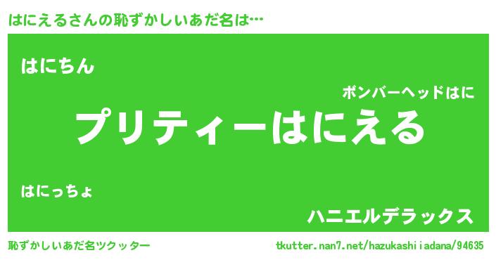 | 意味不明あだ名 | 『つくし科はにえる属』『自称はにえる』 |