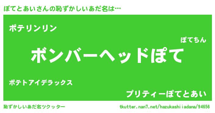 | ヒーロー風カッコイイあだ名 | 『慈愛の使者ぽてとあい』『天弓騎士ポテ』 |
