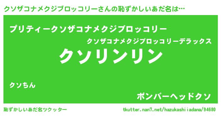 | 欧米人風あだ名 | 『ダレノガレクソザコナメクジブロッコリー』 |