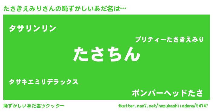| ヘコむあだ名 | 『たさきえみり(笑)』『たさっぺ』 |