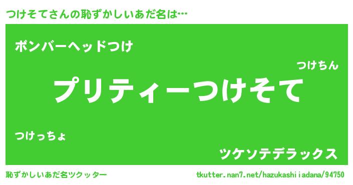 | 意味不明あだ名 | 『ペロリンつけそて』『自称つけそて』 |