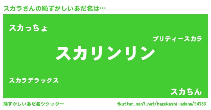 | ヘコむあだ名 | 『スカっぺ』『豆乳』『スカラ(苦笑)』 |