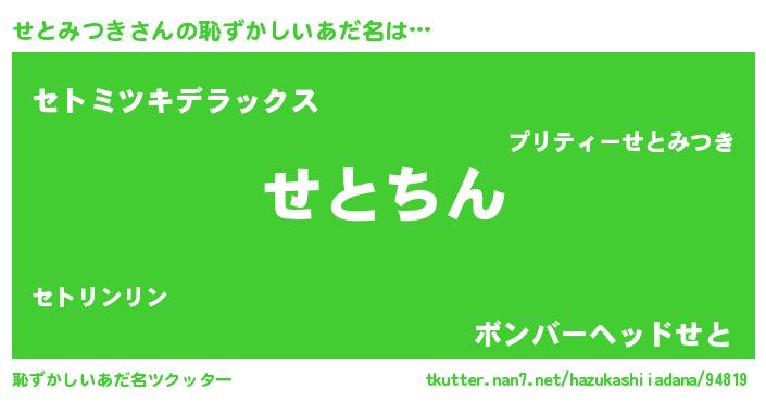 | 意味不明あだ名 | 『永久保存せとみつき』『自称せとみつき』 |