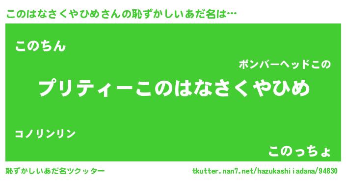 | 男性向けラノベタイトル風あだ名 | 『このはなさくやひめの憂鬱』 |