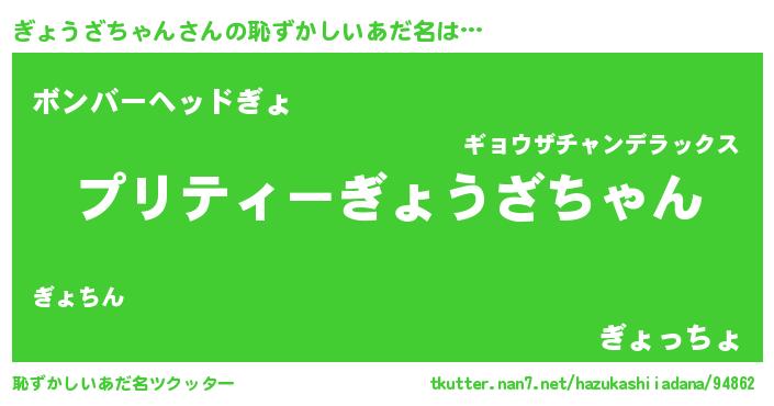 | 男性向けラノベタイトル風あだ名 | 『ギョウザチャンアートオンライン』 |