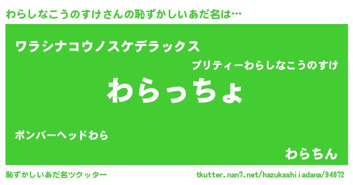 | ファンタジー風あだ名 | 『エターナルワラシナコウノスケー』 |