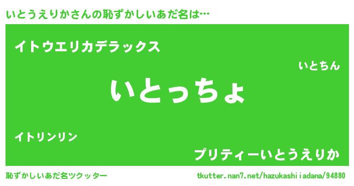 | 女子向けラノベタイトル風あだ名 | 『いとうえりかが死なない童話 林檎のいとうえりかの診療簿』 |