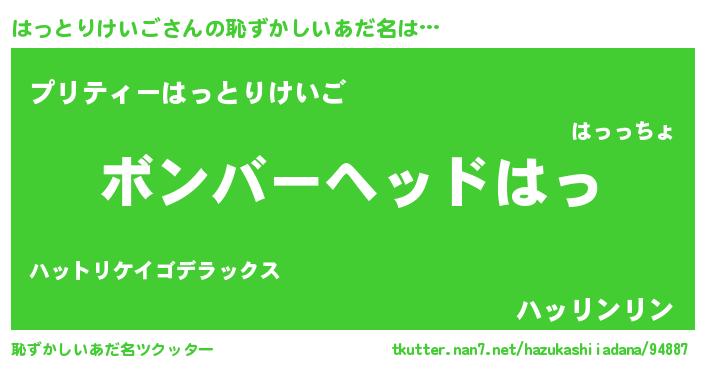 | 欧米人風あだ名 | 『はっとりけいご・ステッグマイヤー』 |