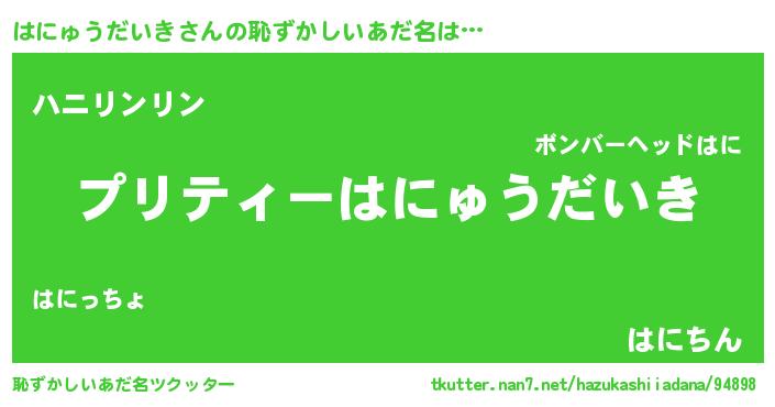 | ヒーロー風カッコイイあだ名 | 『スーパーハニュウダイキ』 |
