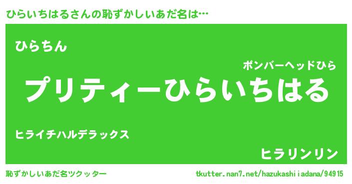 | ヘコむあだ名 | 『ひらにゅー』『ひらいちはる(小並感)』 |