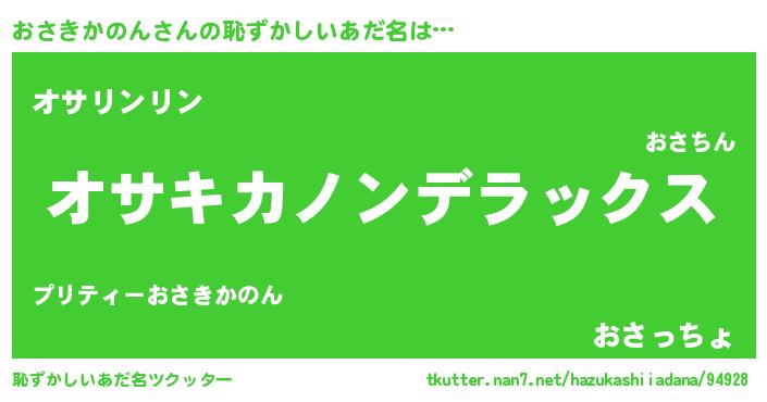 | 意味不明あだ名 | 『自称おさきかのん』 |