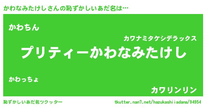 | ヘコむあだ名 | 『かわもー』『かわなみたけし(苦笑)』 |