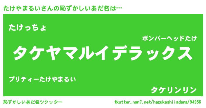 | 意味不明あだ名 | 『自称たけやまるい』 |