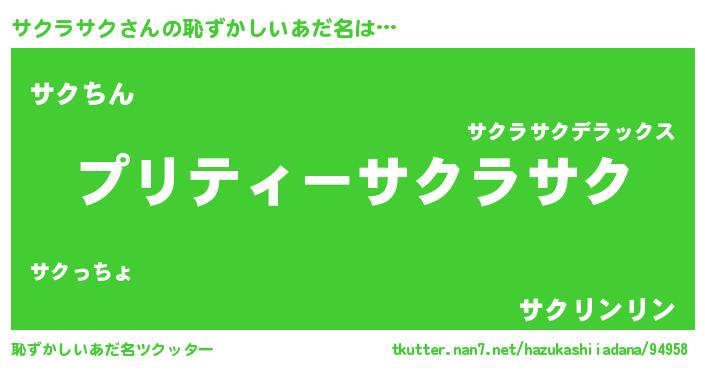 | ヒーロー風カッコイイあだ名 | 『スーパーサクラサク』『ネオサクラサク』 |