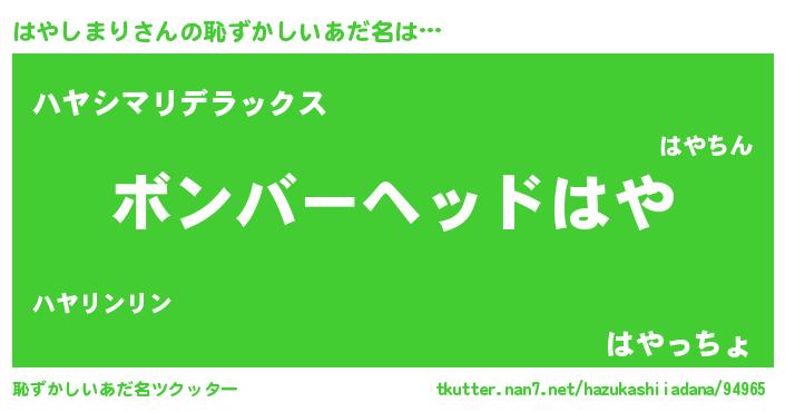 | 男性向けラノベタイトル風あだ名 | 『転生したらはやしまりだった件』 |