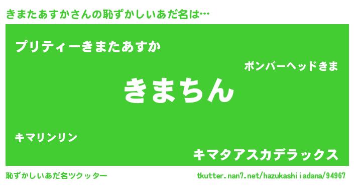| 男性向けラノベタイトル風あだ名 | 『きまたあすかという概念が存在しない退屈な世界 』 |