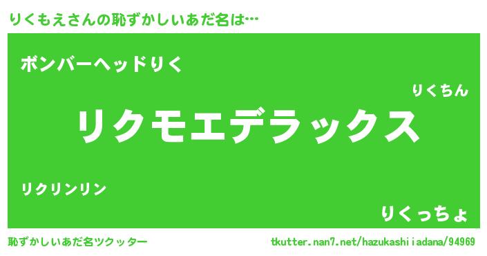 | 男性向けラノベタイトル風あだ名 | 『この素晴らしい世界にりくもえを!』 |