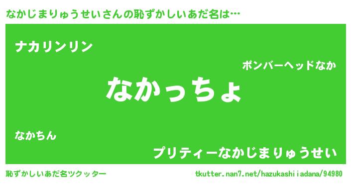| 意味不明あだ名 | 『なかじまりゅうせいフォーエバー』 |