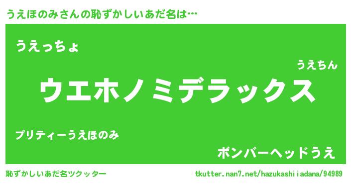 | 意味不明あだ名 | 『自称うえほのみ』『永久保存うえほのみ』 |