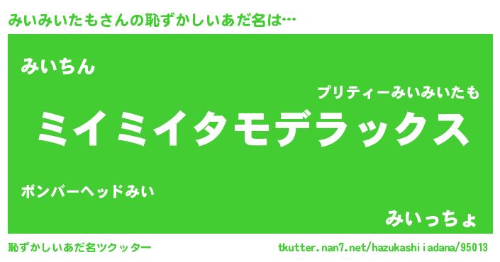 | 意味不明あだ名 | 『自称みいみいたも』 |