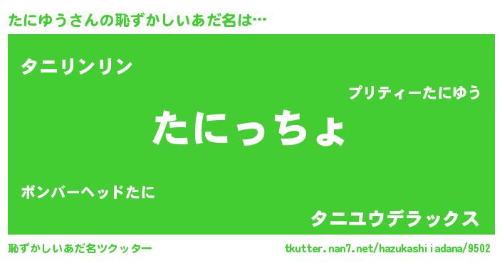 | ファンタジー風あだ名 | 『エターナルタニユウー』『ゼタニトゥ』 |
