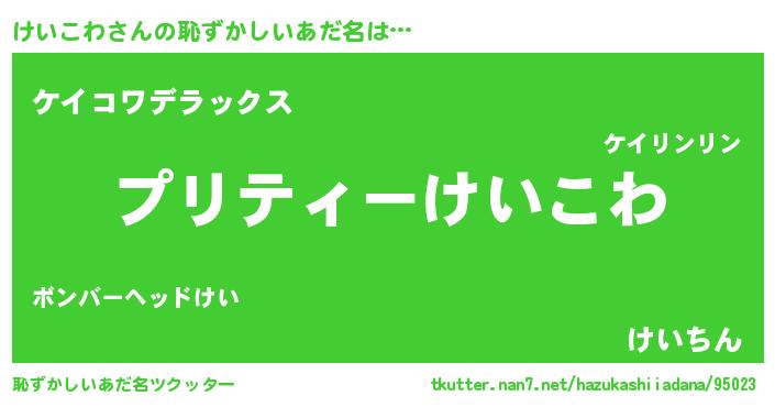 | ヘコむあだ名 | 『けいにー』『けいこわ(笑)』『牛乳』 |