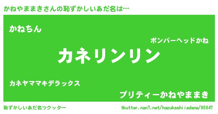 | 意味不明あだ名 | 『とにかく怪しいかねやままき』 |
