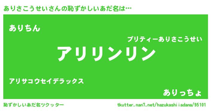 | 意味不明あだ名 | 『とにかく怪しいありさこうせい』 |