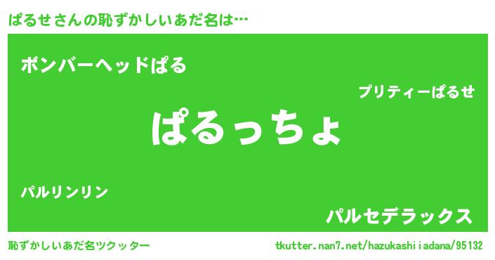 | 男性向けラノベタイトル風あだ名 | 『この素晴らしい世界にぱるせを!』 |