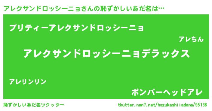 | 女子向けラノベタイトル風あだ名 | 『アレクサンドロッシーニョなんてお断りですっ。』 |