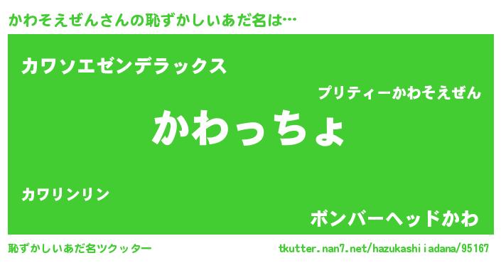 | 意味不明あだ名 | 『かわそえぜんフォーエバー』 |