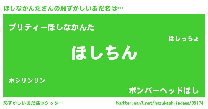 | ヘコむあだ名 | 『ほしなかんた(爆)』『ほしふぇ~』 |