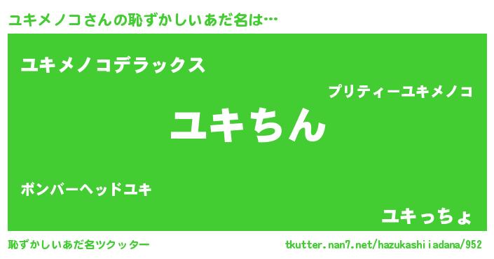 | 意味不明あだ名 | 『永久保存ユキメノコ』『自称ユキメノコ』 |
