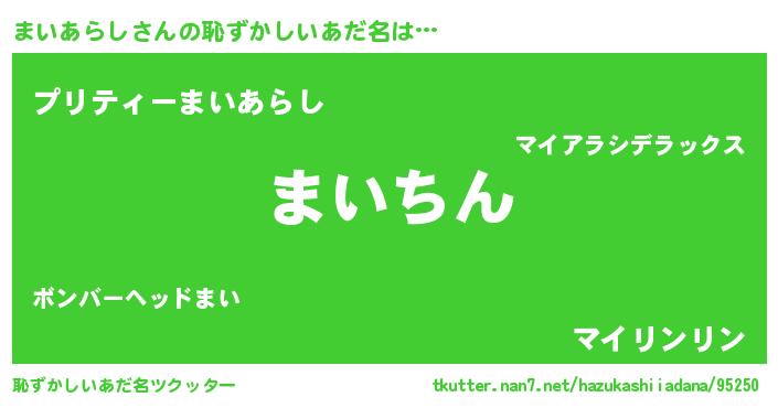 | ヘコむあだ名 | 『まいあらし(遠い目)』『まいにゅー』 |