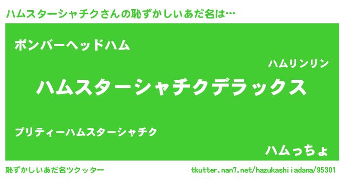 | 伝説のあだ名 | 『救世主となる占い師ハムスターシャチク』 |